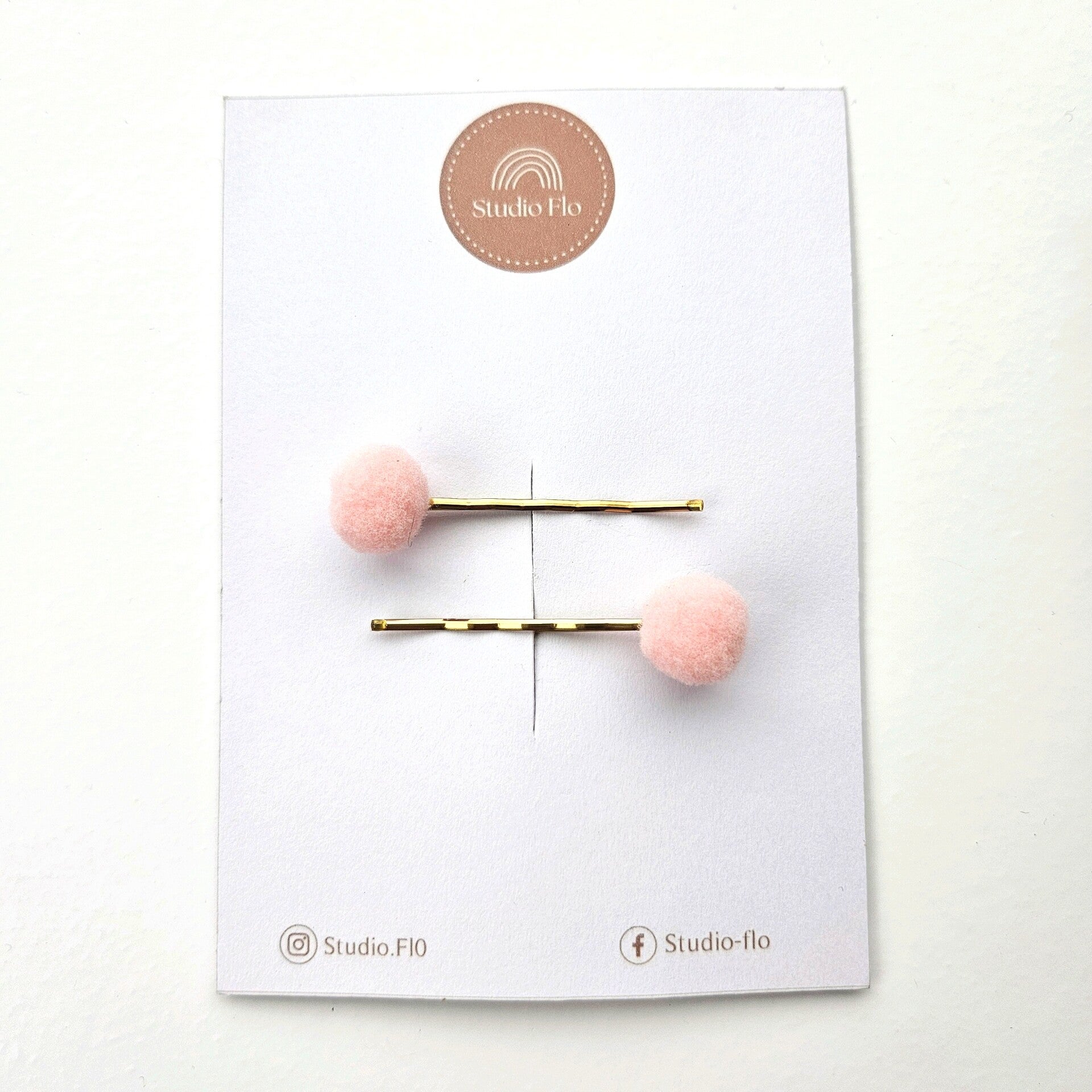 Deze set bevat 2 gouden schuifspeldjes van 5 cm met een roze pom pom.