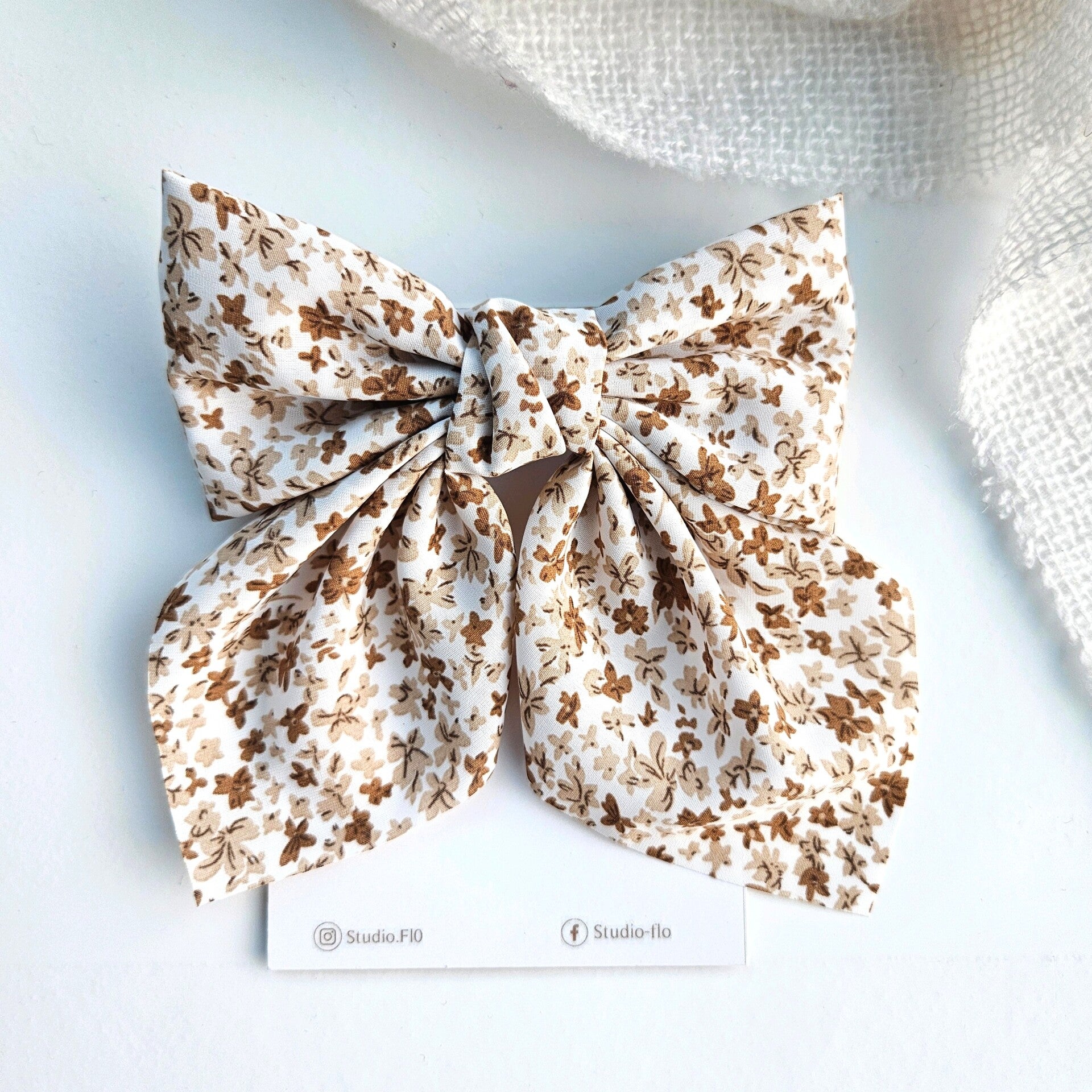 Deze french barette bevat een mooie stoffen strik die soepel valt in je haar.