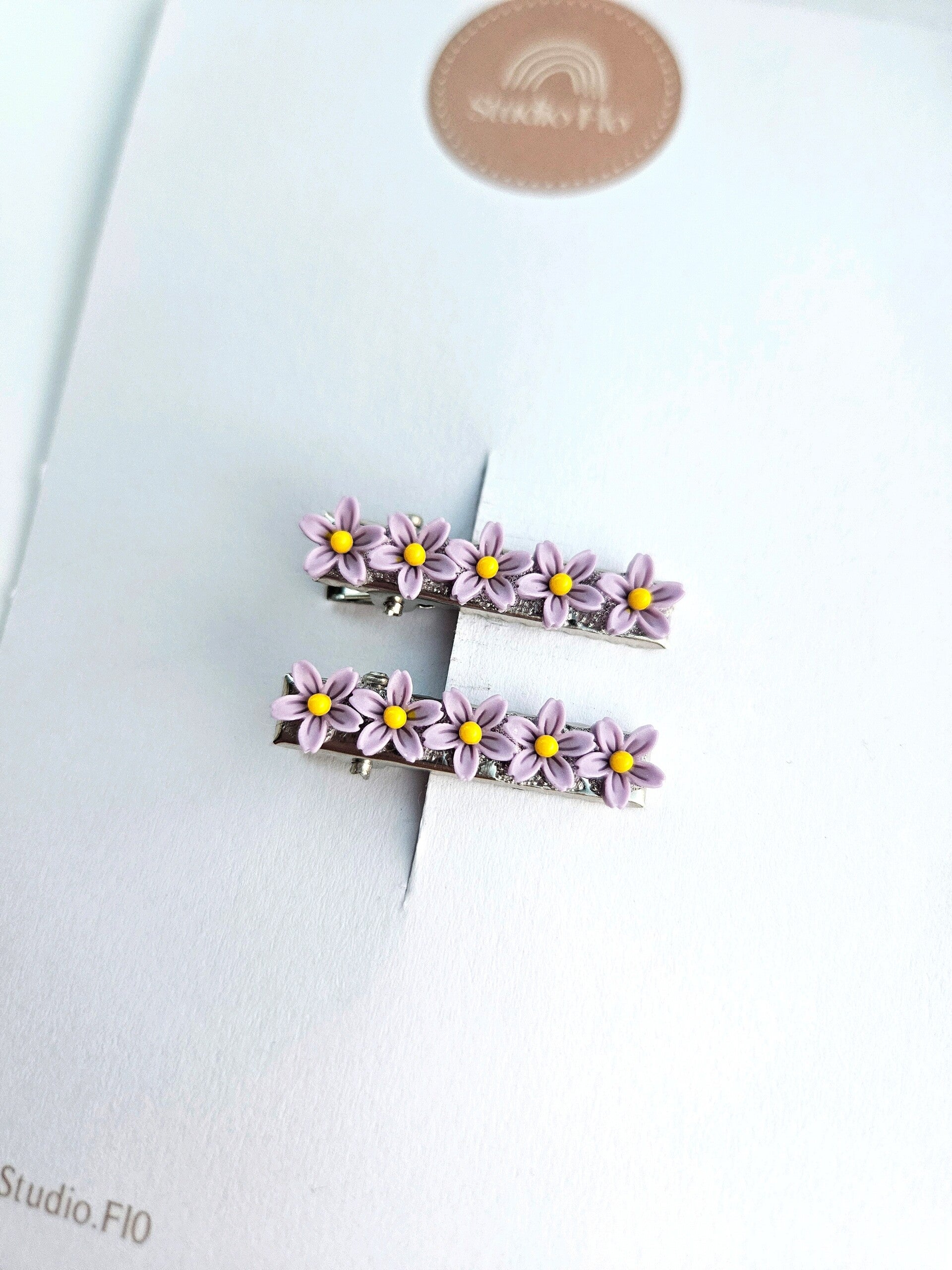 Deze set bevat 2 zilveren alligatorclipjes van 3 cm met bloemetjes.