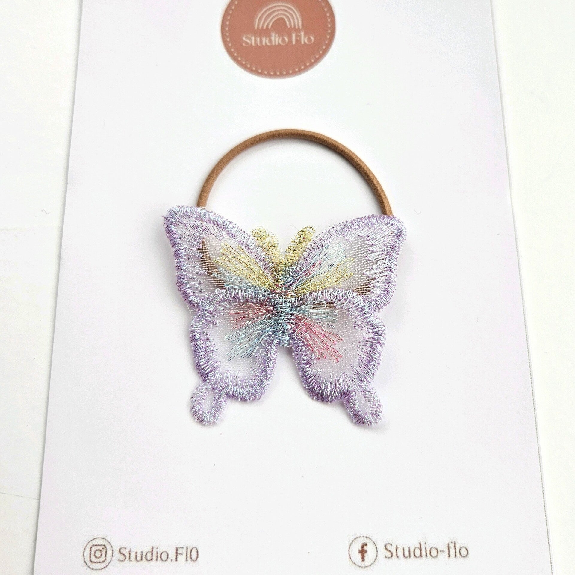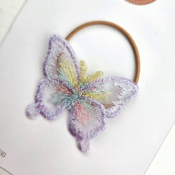 Dit prachtige vlindertje is bevestigd op een fijn groot haarelastiekje zonder ijzertje.