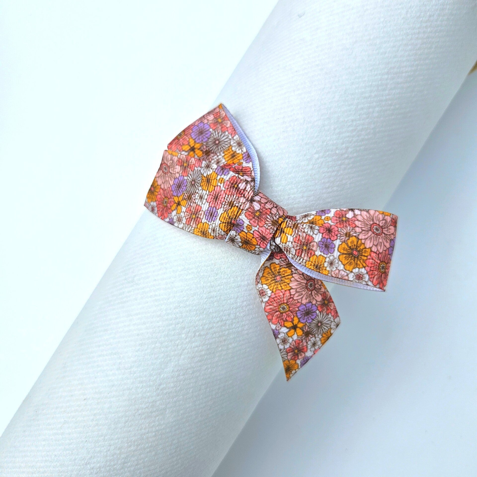 Zacht nylon haarbandje met een toffe strik met bloemetjesprint