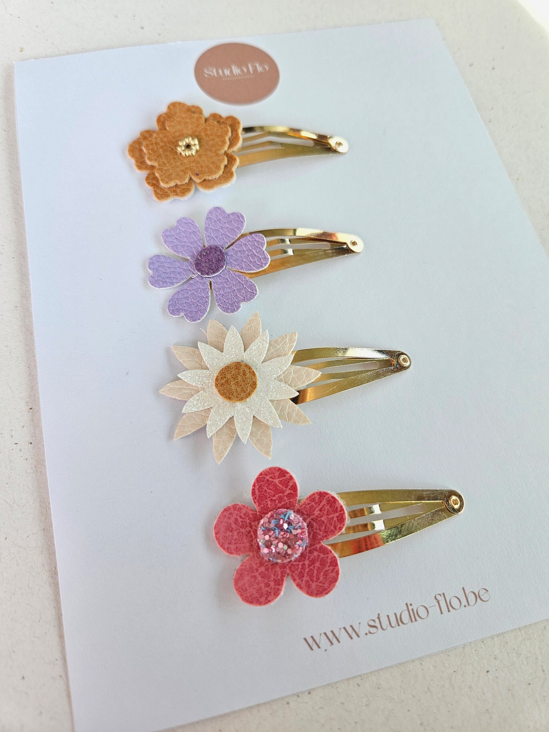 Setje bevat 4 klikklakspeldjes van 5 cm met prachtige najaarsbloemen.