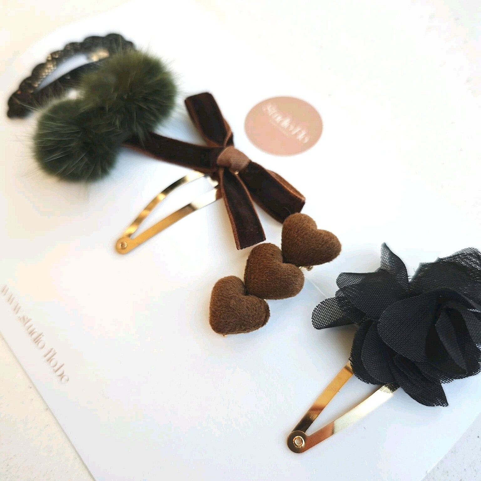 - Uitvoering:gouden en zilver speldjes/clipjes.