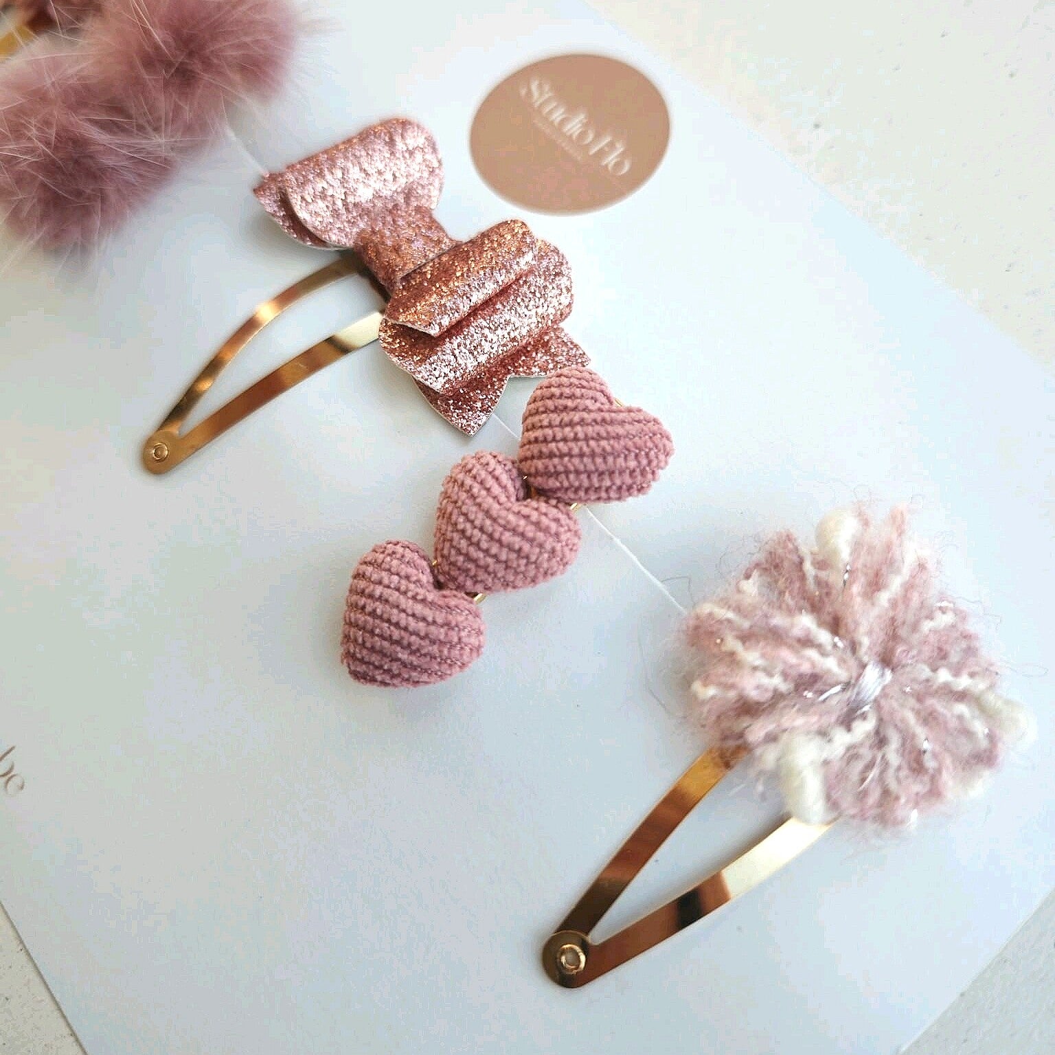 3 klikklakspeldjes en 2 alligatorclipjes elk met hun eigen mooie applicatie zoals te zien op de productfoto.