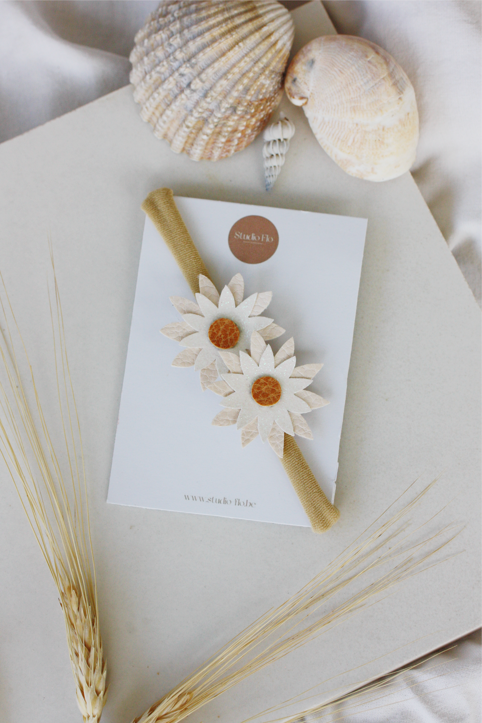 Een schattige haarclipje of haarbandje in een bloemvorm,perfect voor kleine haarlokjes.Licht en stevig gemaakt met zachte materialen om de hele dag te blijven zitten.