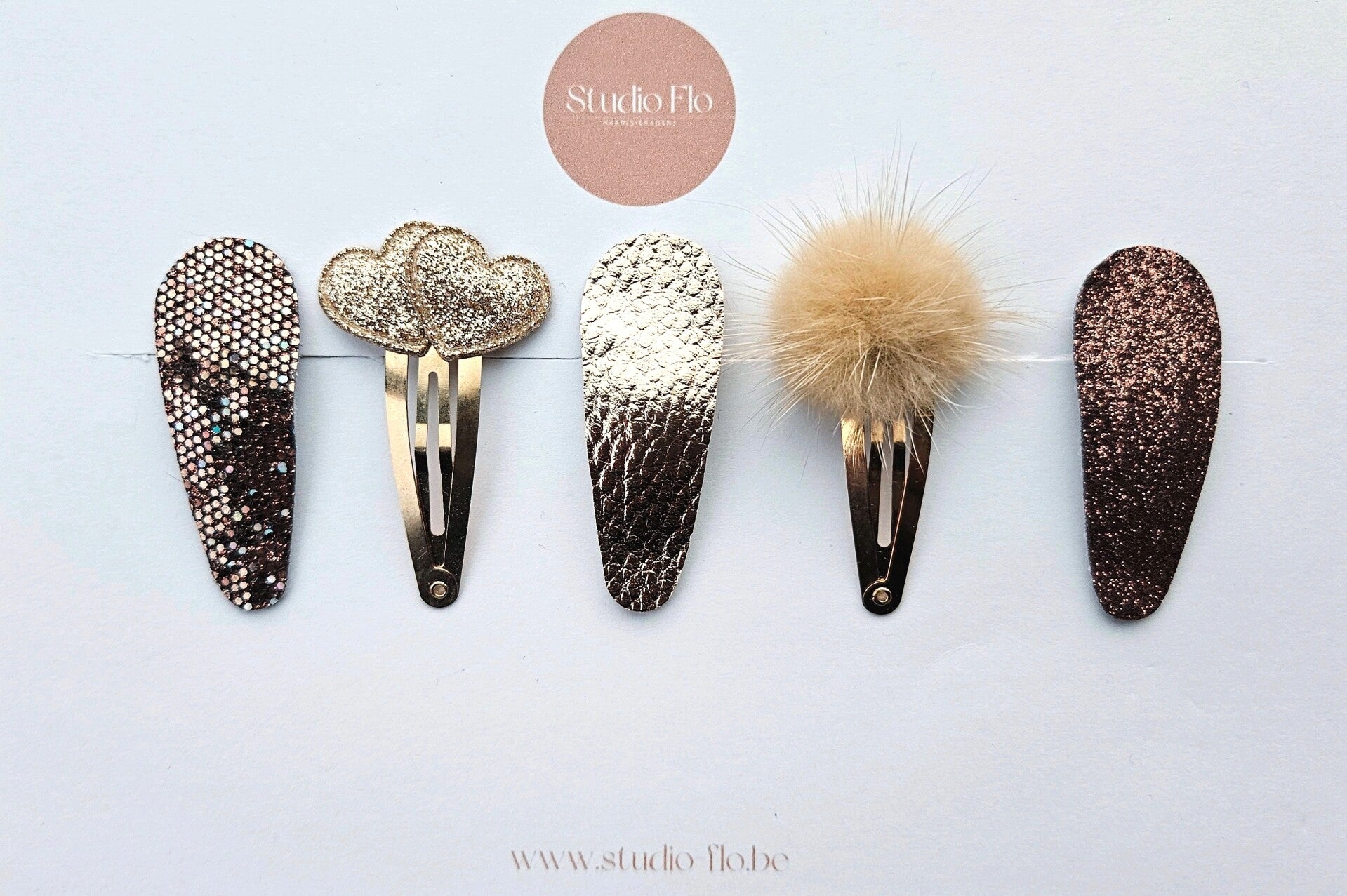 Dit setje van 5 klikklakspeldjes met telkens een leuke applicatie voor het kapsel van je mini een leuke twist te geven of toch dat tikkeltje meer.