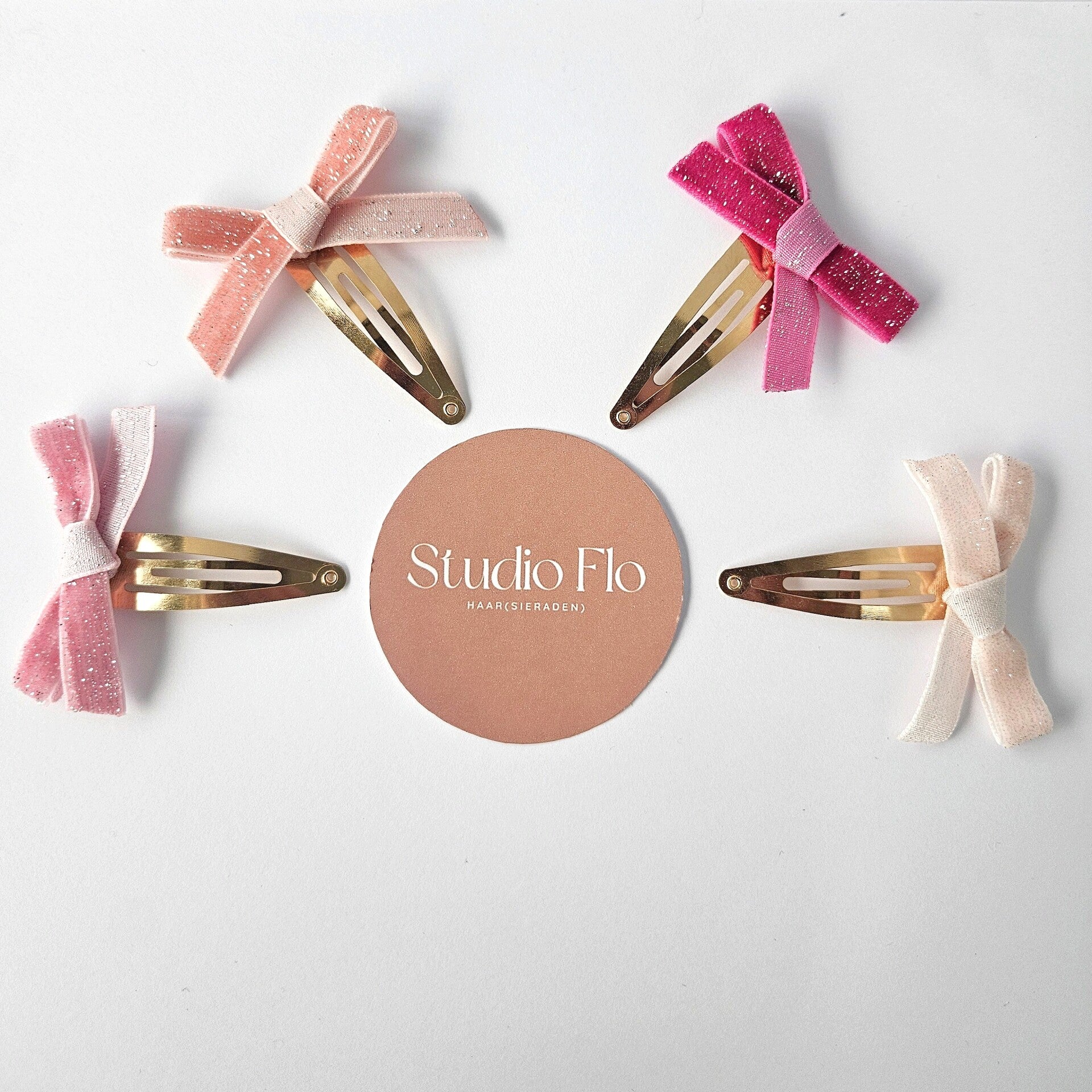 Dit allerliefste speldje met een velvet strikje zijn in de zachtste kleurtjes te verkrijgen zodat je jouw kapsel kan accentueren.